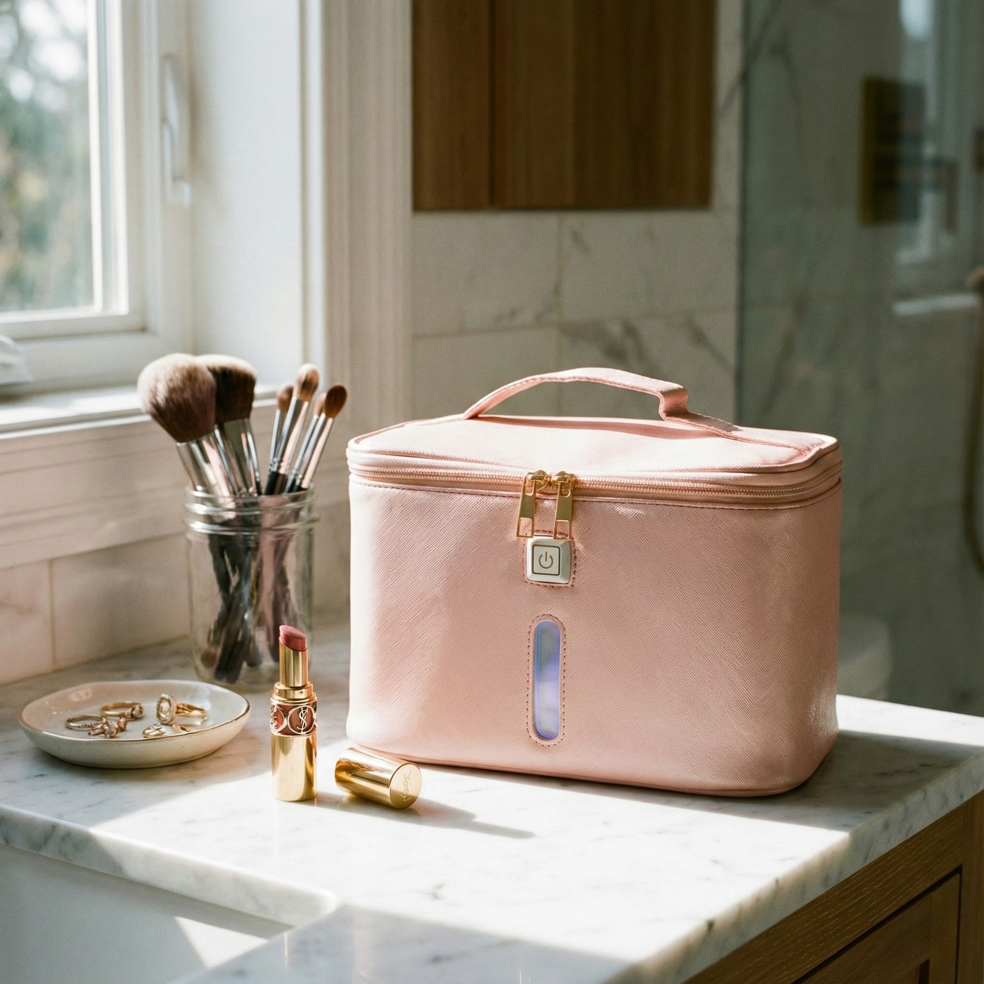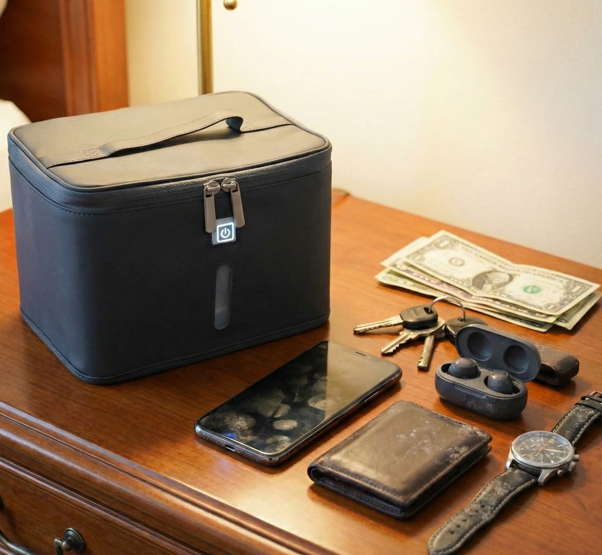 The stylish and durable case makes it easy to sterilize your belongings at home, office, car or when traveling. Power through your USB power adapter or USB power bank and you are ready to sanitize anything with the press of a button.